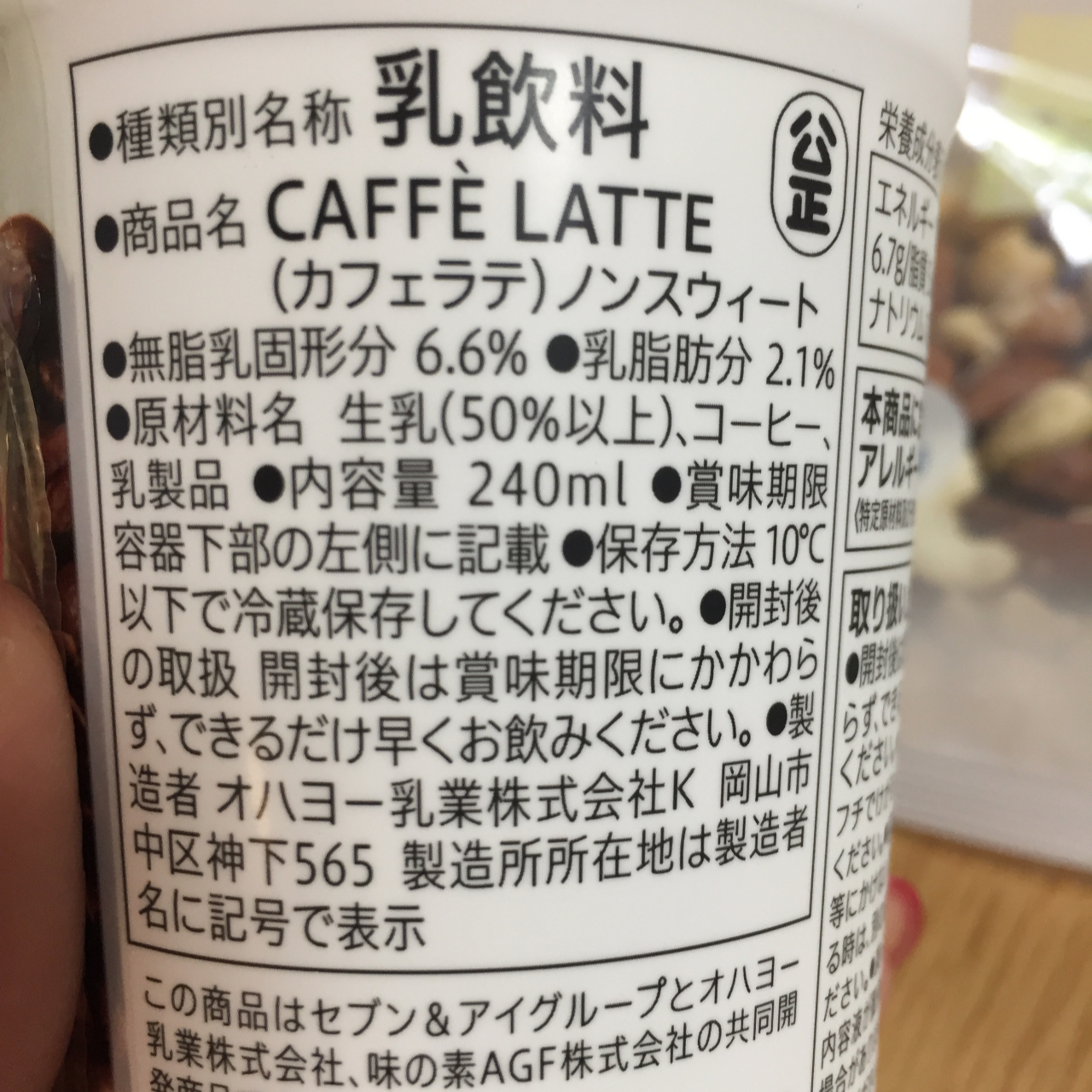 カロリーはあんまり気にしません。でも「原材料名」はチェック。これ生乳とコーヒー、それだけ。これが凄いのは、他の物の原材料をチェックしてみると分かります。カタカナで書いてあってそれが何なのか分からない、自分に対して説明出来ない様なものは体に入れたくない。それだけです。